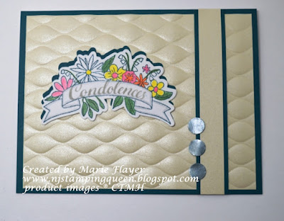 This time I also added some "shimmer" by using Recollections Shimmer Champagne cardstock and Nuvo Crystal Drops Neptune on the round accents. (I applied some Neptune drops onto Peacock CS and swiped across with an old plastic gift card. When it dried I then used a 3/8" hole punch.)