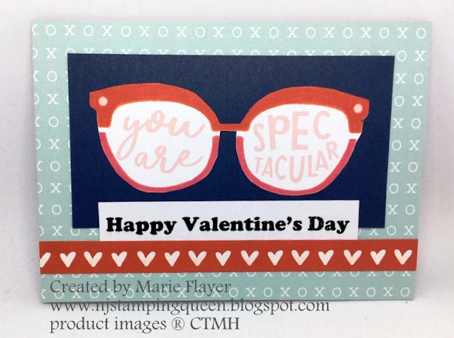 The spectacle image was cut from one of the wonderful Heart Happy papers (available until January 31 only). The background panels and heart border are also from this paper. The greeting was printed using Cooper Black font. I love how these non-traditional Valentines Day colors look together!