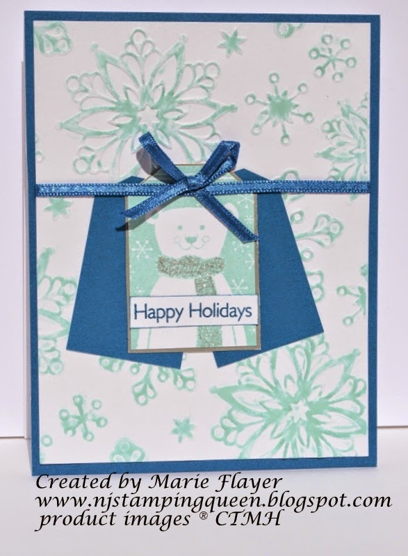 My card features a future Close To My Heart Stamp of the Month for October 2014 called Home for the Holidays (pg.14 of the Annual Inspirations catalog) and a new CTMH color called Glacier.