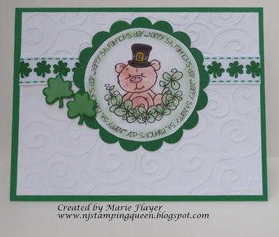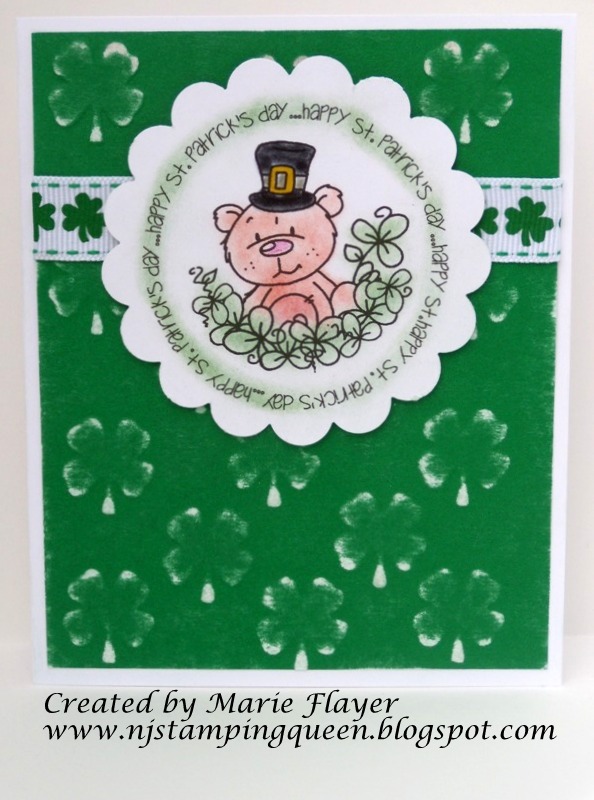 Catch the Bug Bingo challenge--(top row across--green, image and charm--shamrock brads)