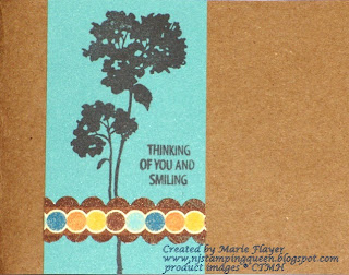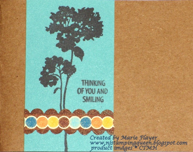 The last of these cards was made with Autumn Terracotta CS and retired B&T paper and Honey CS. The utensils were stamped onto a scalloped circle which was cut with the CTMH 2" Scallop Punch.